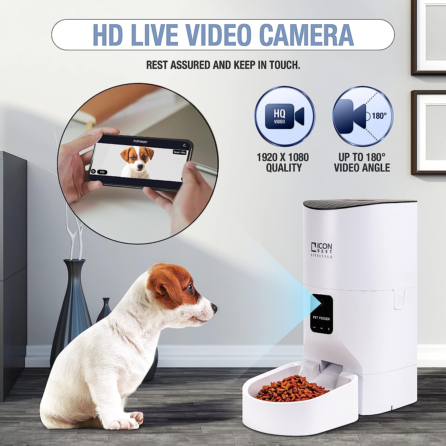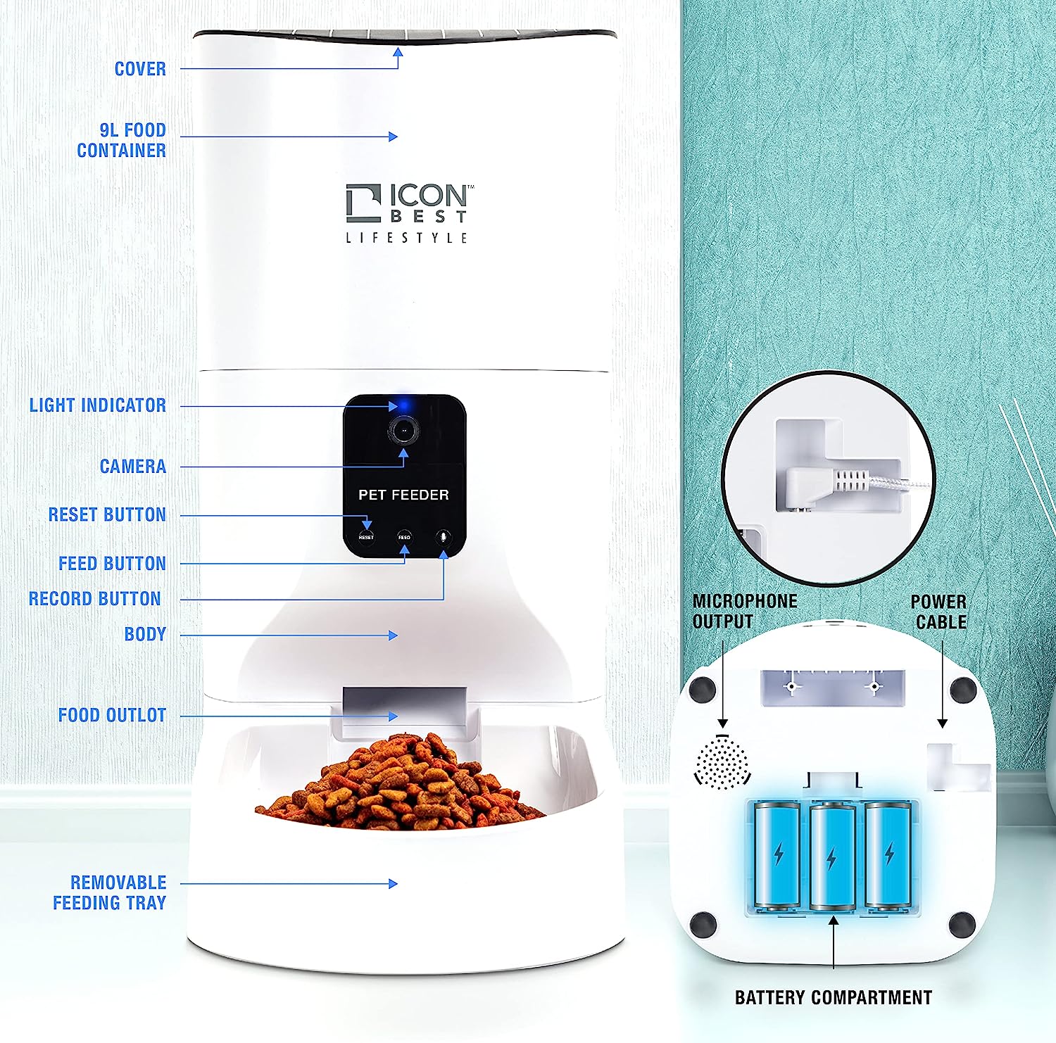 - Automatic meal feeding – No more stress over waking up in the middle of the night or early morning feeding, with ICON BEST Automatic Pet Feeder, you can program the pet feeder to feed your pet at the right time with the right portion per meal for healthy lifestyle, up to 20 portions each time.