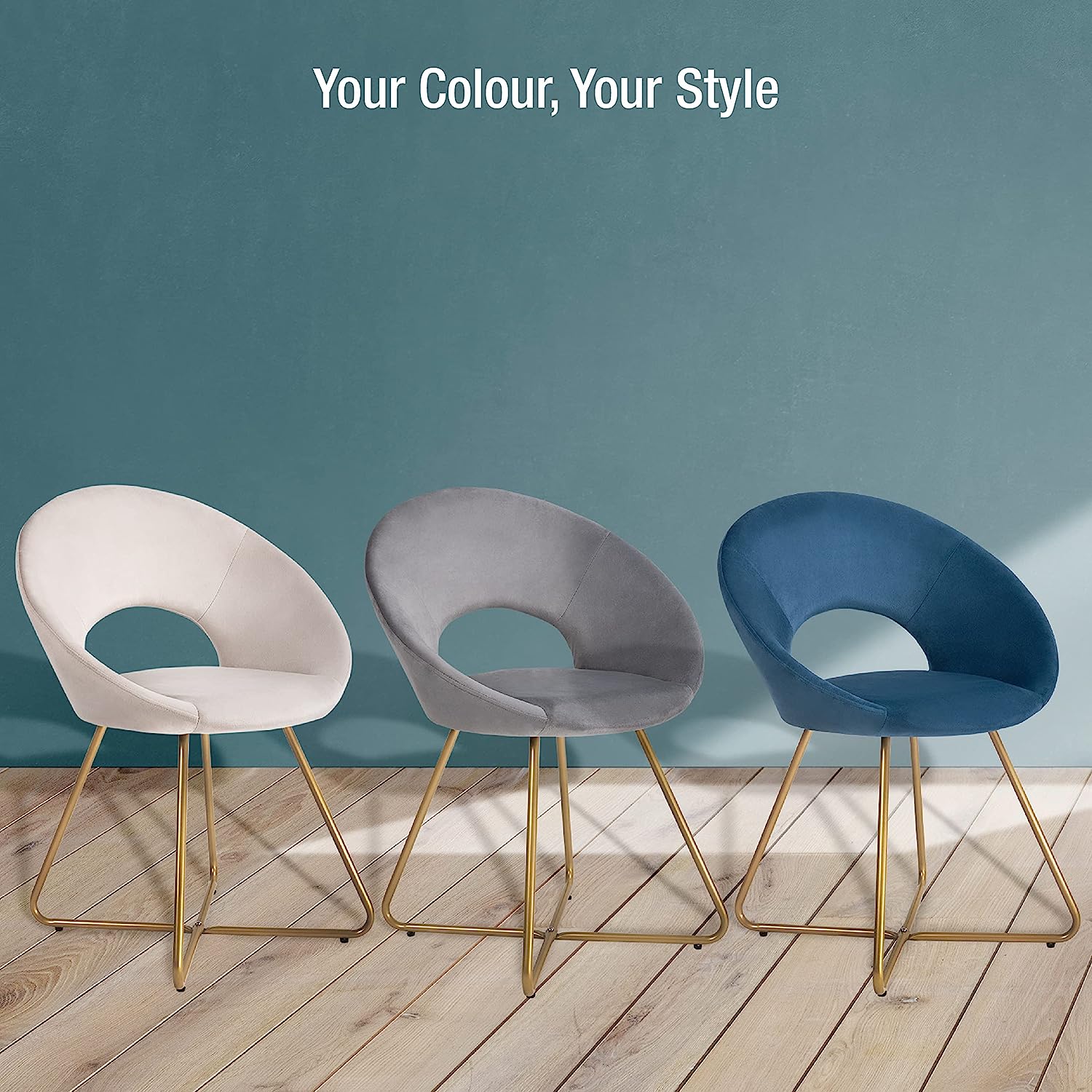 - 3. HIGH ELASITCITY: Made with premium velvet fabric and filled with high density sponge, chair offer high elasticity for comfortable seat and are not easily deformed after a long-time use, the golden metal frame in brush finished, great for your meeting room or anywhere else a bold accent chair is needed.